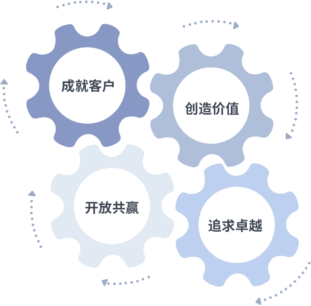 成就客户是一切决策的出发点,,,,创造价值是衡量所有工作的标准,,,追求卓越是尊龙凯时人生就是博做事做人的态度,,,,开放共赢是尊龙凯时人生就是博的格局也是最终的结果。。。。价值观的齿轮环环相扣,,推动着组织里的每个人不断向前。。
